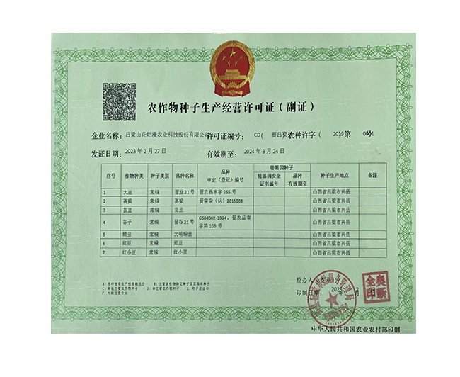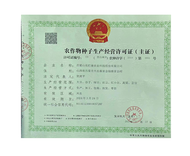 呂梁山花爛漫農(nóng)業(yè)科技股份有限公司是山西省農(nóng)業(yè)產(chǎn)業(yè)化重點(diǎn)龍頭企業(yè),公司成立于2008年,法人代表賀虎平,注冊(cè)資本1000 萬(wàn)元,現(xiàn)有員工 30 人。公司位于興縣蔡家會(huì)鎮(zhèn)蔡家會(huì)村建有占地面積1萬(wàn)多平方米生產(chǎn)區(qū)和辦公區(qū),年總加工雜糧能力達(dá)到4萬(wàn)噸。擁有一套日精加工50噸谷子成套設(shè)備生產(chǎn)流水線(xiàn);擁有一套日精加工30噸豆面、蕎面設(shè)備流水生產(chǎn)線(xiàn);擁有一套日精加工50噸紅小豆、豇豆、綠豆、腎型黃豆、紅蕓豆設(shè)備流水生產(chǎn)線(xiàn),2020年引進(jìn)省農(nóng)科院農(nóng)產(chǎn)品加工研究所谷子精深加工技術(shù),目前設(shè)計(jì)年產(chǎn)300噸的小米油加工一條龍生產(chǎn)線(xiàn)已經(jīng)安裝調(diào)試完畢,產(chǎn)品經(jīng)化驗(yàn)達(dá)到國(guó)家一級(jí)油標(biāo)準(zhǔn),并獲得兩項(xiàng)專(zhuān)利證書(shū)。主要產(chǎn)品有“山花爛漫”牌有機(jī)小米、綠色小米各種精美包裝系列;蔡家會(huì)村豇豆面、豌豆面等雜糧面、手搟豆面系列、以及有機(jī)精品雜糧系列。擁有“山花爛漫”山西省著名商標(biāo)。公司采用線(xiàn)下和線(xiàn)上銷(xiāo)售相結(jié)合的營(yíng)銷(xiāo)模式。