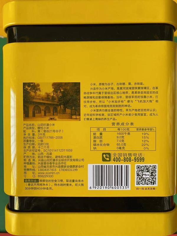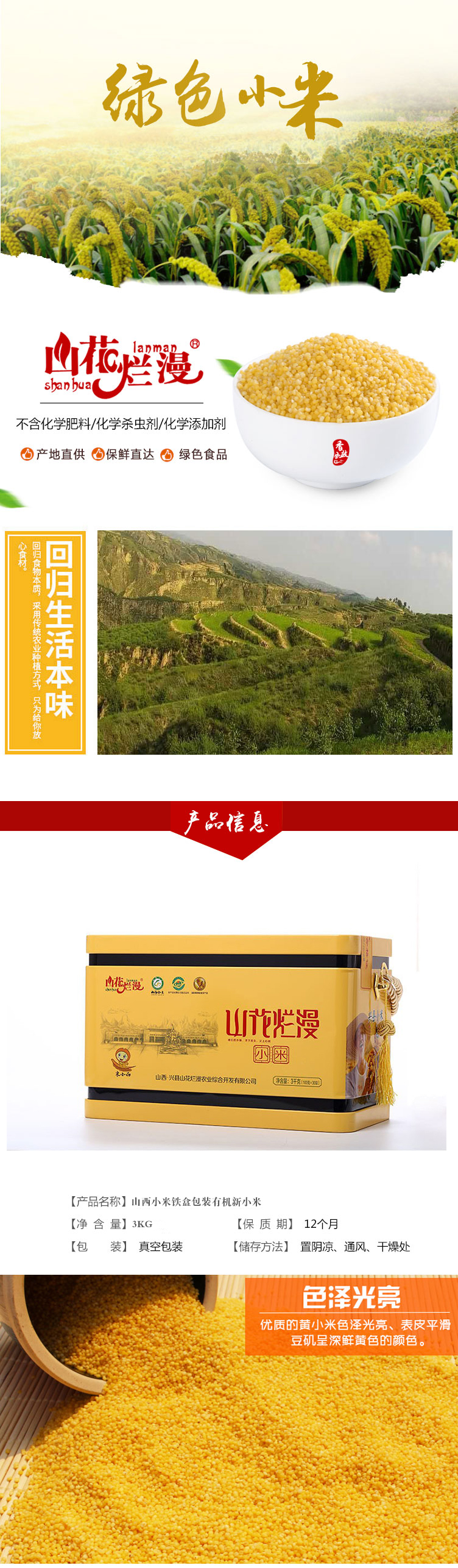 • 山花爛漫有機(jī)小米鐵盒 禮 盒 3kg 充氮保鮮